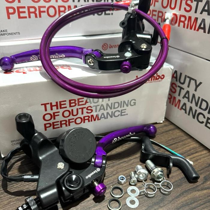 1SET KIRI KANAN MASTER REM ACCOSSATO S1 PUMP 14 PLUS SELANG REM 95CM UNIVERSAL MOTORCYCLE - BREM ACOSATO SILVER+SELANG S
