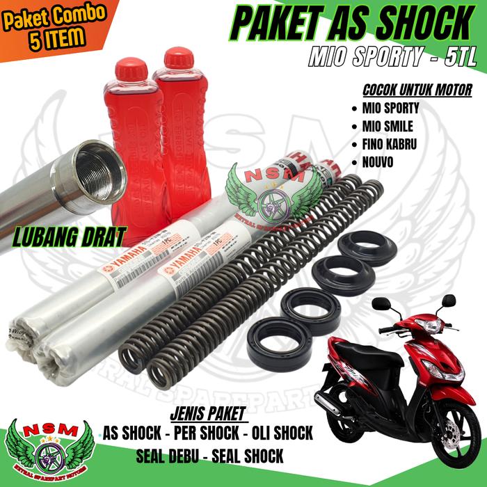 PAKET 5 ITEM AS SHOCK DEPAN MIO SPORTY MIO SMILE NOUVO FINO KARBU / PAKET PER SHOCK + AS SHOCK + OLI SHOCK + SEAL DEBU +