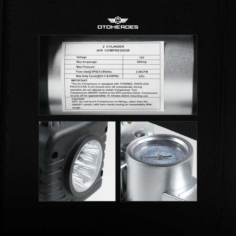 OTOHEROES Pompa Ban Compressor Double Cylinder 12V 150 PSI - 628-4X4