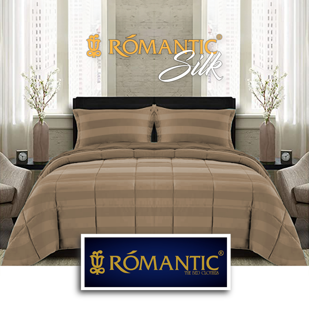 Bedcover Sprei Set Microtensel Coklat by ROMANTIC Silk motif salur Micro Lyocell Sutra