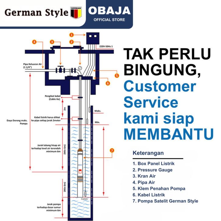 German Style Pompa Satelit 2.5 inch 0.25 hp + kabel 30 Meter / Pompa Submersible 2.5" 0.25 HP + Kabel Impeller Plastik