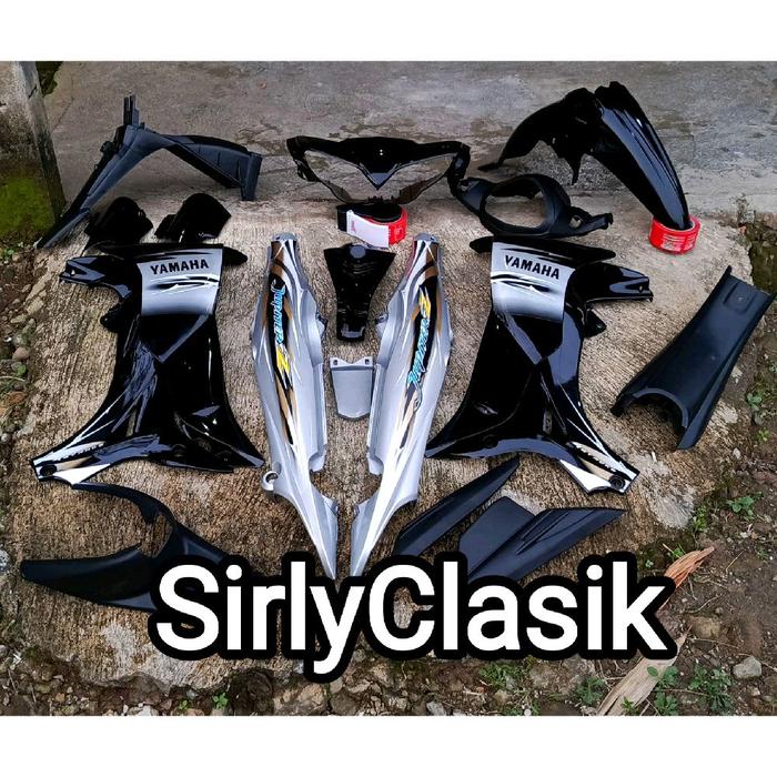 COVER BODY FULLSET HALUS KASAR YAMAHA JUPITER Z NEW BURHAN 2005 S/D 2009 WARNA HITAM SILVER - FULLSET HALUS SAJA, PLUS B