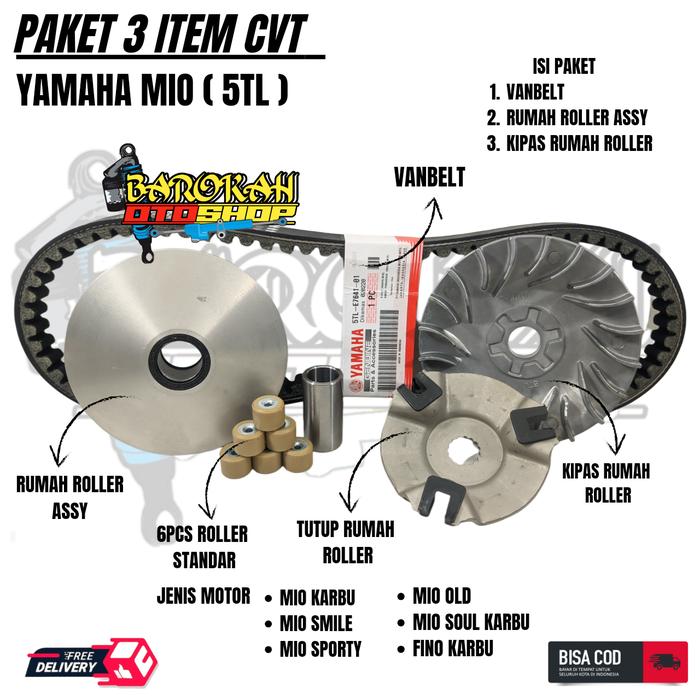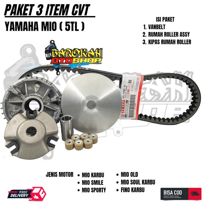 PAKET KIRI CVT LENGKAP 4 ITEM PULLY A55Y MIO SPORTY + RUMAH ROLLER A55Y + KIPAS + VANBELT MIO SMILE / MIO SOUL / NOUVO /