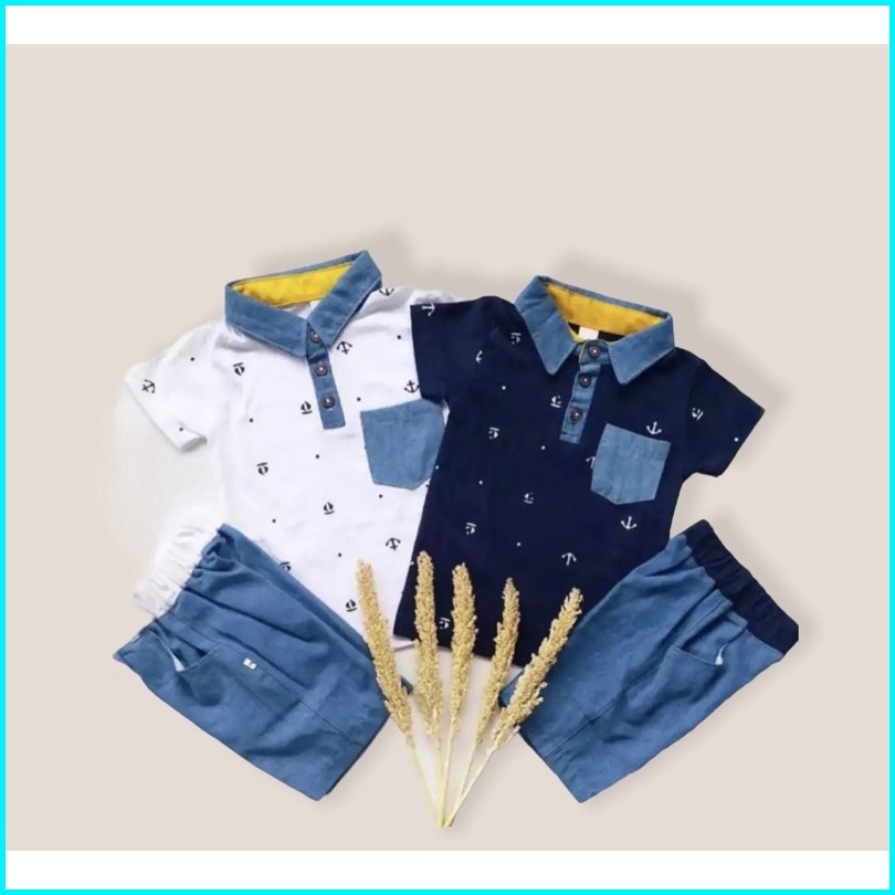 Setelan Baju Dan Celana Anak Jangkar Denim 1-5 Tahun