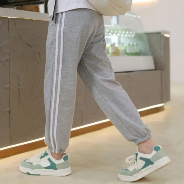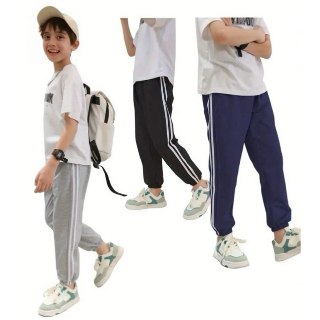 Celana Olahraga Garis Samping Anak Celana Jogger Pinggang Elastis Kasual Pakaian Olahraga Anak Laki-Laki Sport