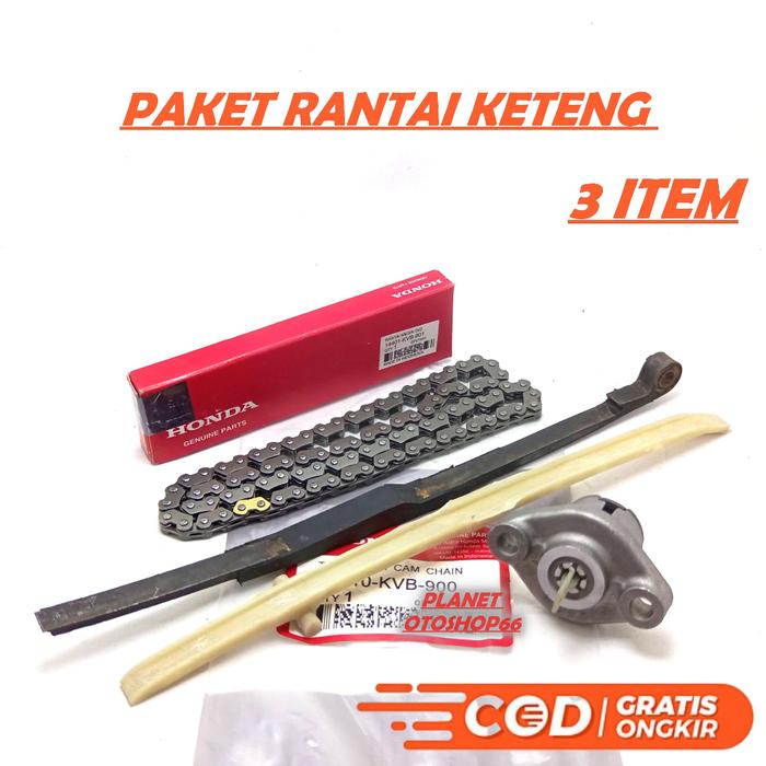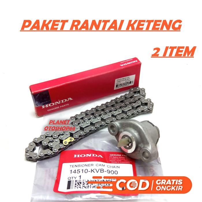 PAKETAN 3 ITEM RANTAI KETENG + KARET TENSIONER + T0NJ0KAN KETENG HONDA VARIO 110 / TECHNO / BEAT / BEAT FI / SCOOPY / SC