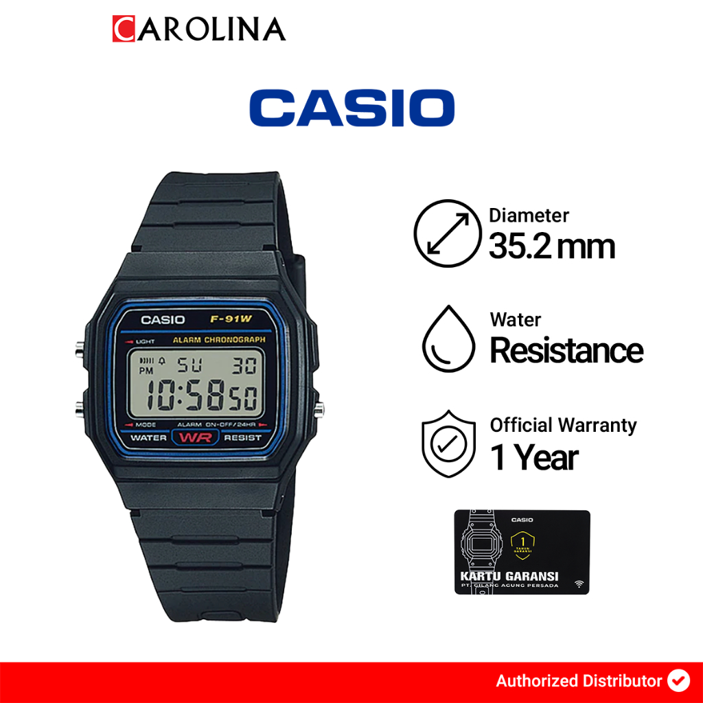 Jam Tangan Unisex Casio General F-91W-1D Classic Digital Dial Black Resin Band