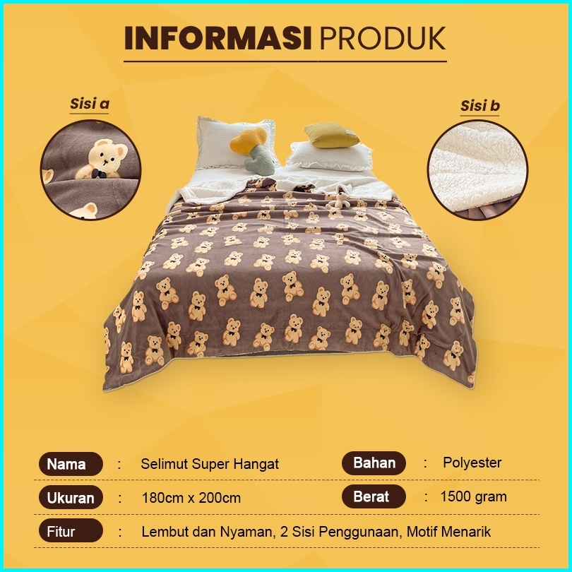 Selimut Tebal Anak Bulu Halus Ukuran King 180cm X 200cm Dewasa Tebal 2sisi Mt-5a Friendly Mattindo