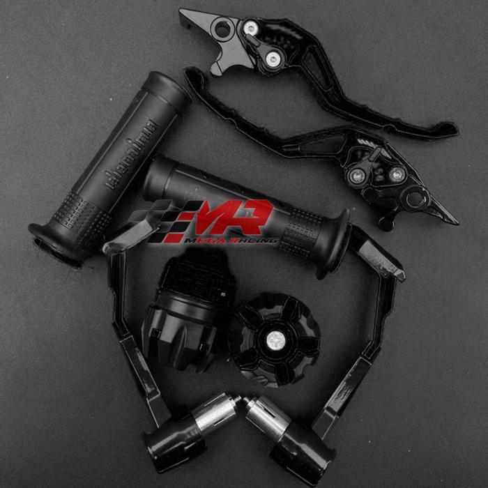 PAKET VARIASI MOTOR 4 ITEM - HANDLE JARUM CNC + PROGUARD ROBOT D1 + JALU AS RODA DEPAN + HANDGRIP SISIK KARET EMPUK UNIV