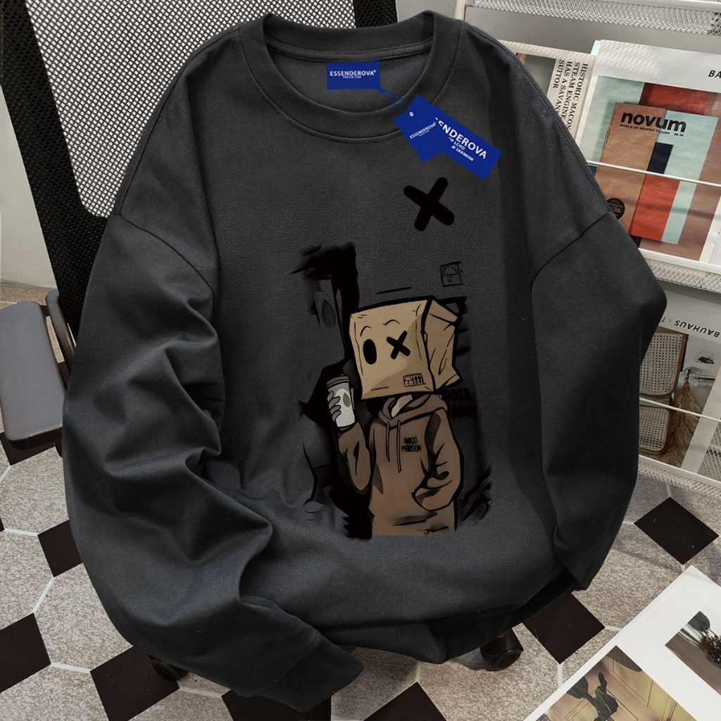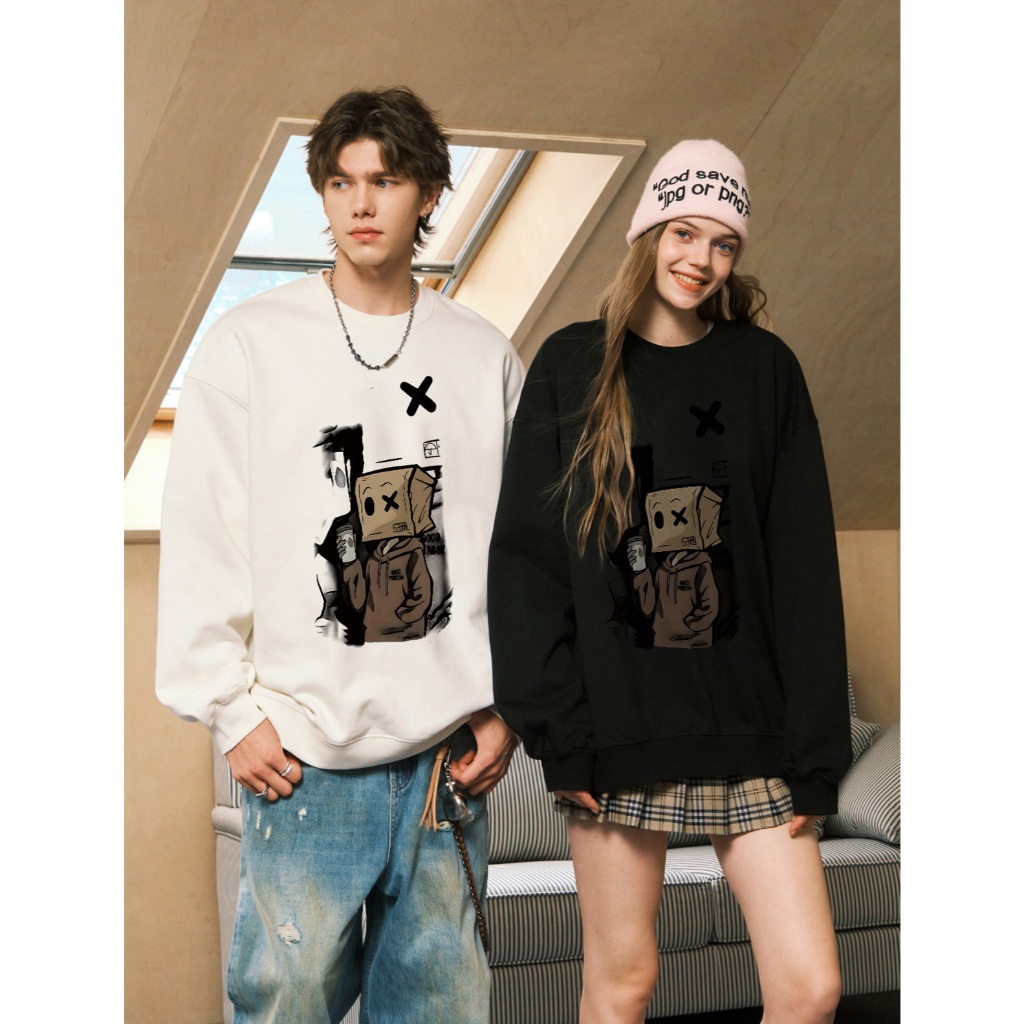 Excetra.id sweater cowok baju lengan panjang pria oversize sweater pria( kardus gaya jalanan kartun ) | crewneck pria pr