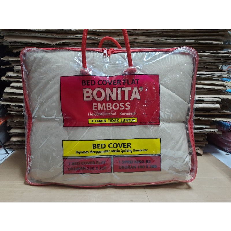 Bedcover Set BONITA Polos Emboss 180x200 / Satu Set Bed Cover Polos 180 x 200 BONITA