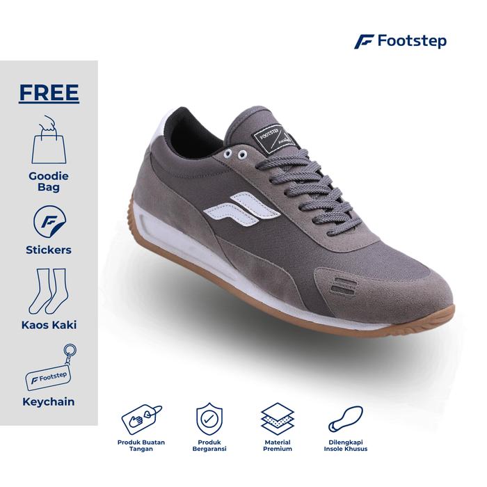 FOOTSTEP FOOTWEAR SEPATU SNEAKER SIGNATURE PRIA FUSION V2 GREY ORIGINAL SHOES KERJA CASUAL SNEKERS HITAM BLACK PUTIH - GREY, SIZE 39