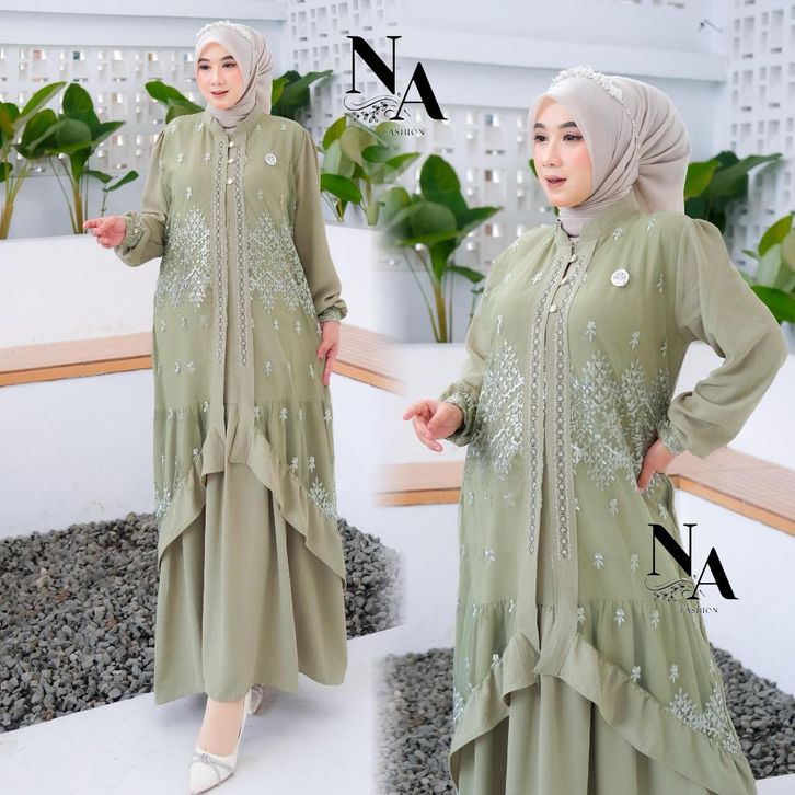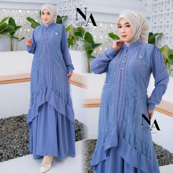 zahra dress gamis trendy terbaru bahan crinkle mix brokat sapto anggun mewah cantik elegant gamis wanita kekinian