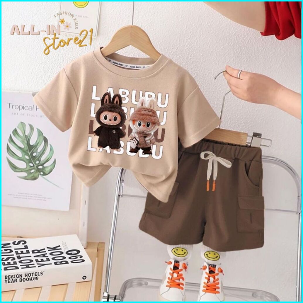 Setelan Baju Anak Motif Karakter Labubu Celana Pendek Umur 1-5 Tahun Oneset Anak Laki-laki Motif Karakter Labubu
