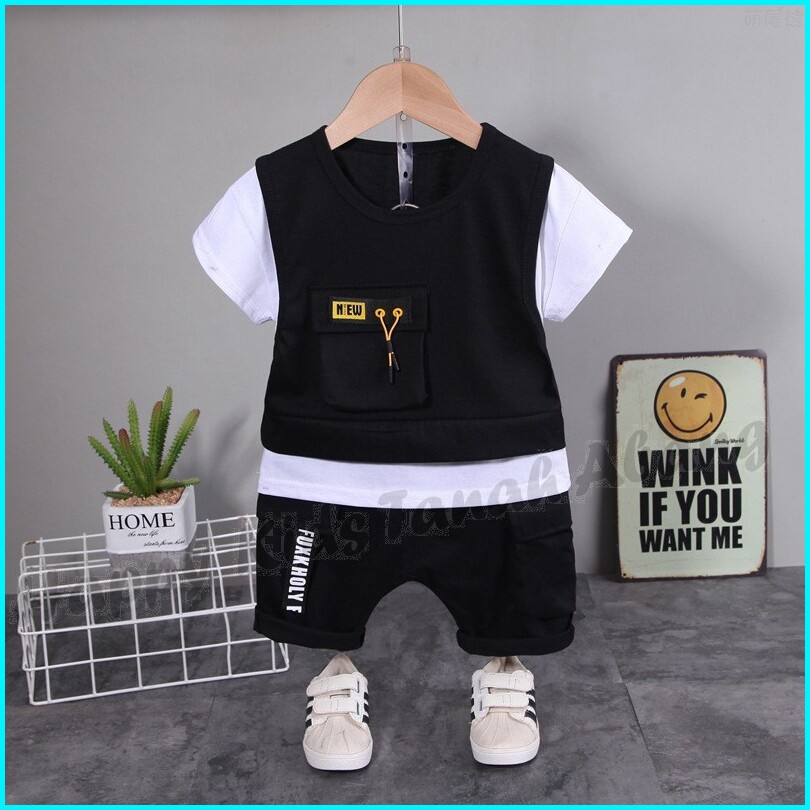 Setelan Anak Lengan Pendek Baju Anak Laki-laki Setelan Kaos Anak Set Pakaian Natal Anak Laki-laki 2025 Setelan Anak Laki