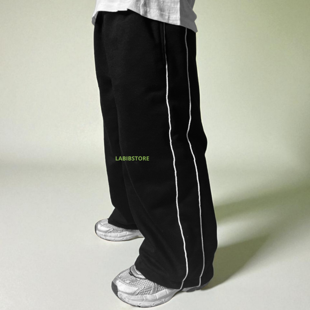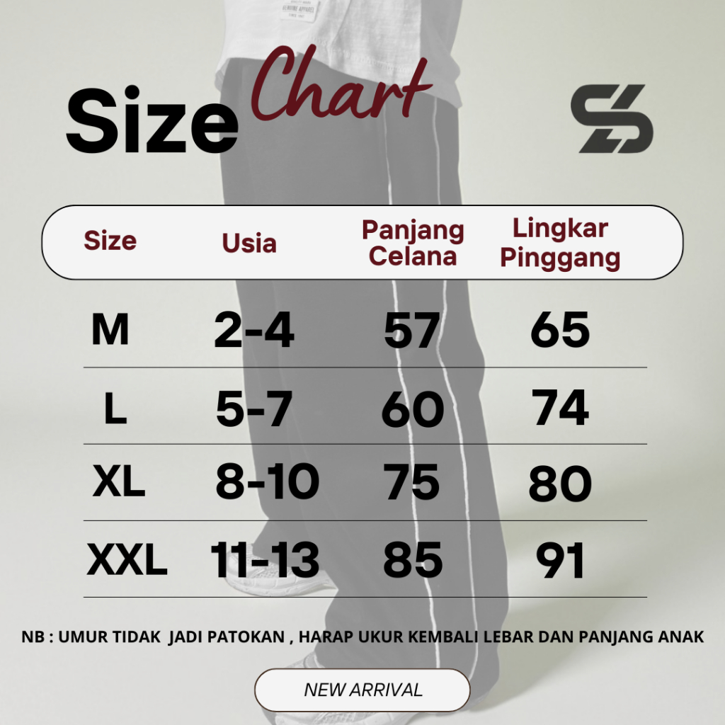 Celana Anak Baggy/Skena Strip Putih Laki-Laki Dan Perempuan 2-13 Tahun Bahan Fleece 240 Grm - Fashion Anak
