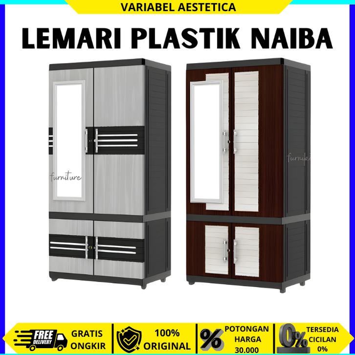 LEMARI PLASTIK LEMARI PAKAIAN NAIBA RAK PIRING FIT GANTUNG FULL KUNCI KACA 1523 1503