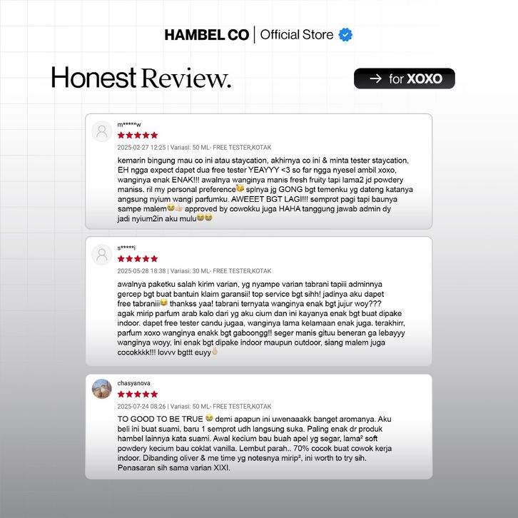 Parfum HAMBEL.CO - For XOXO | Floral & Powdery | Parfum Unisex / Parfum pria tahan lama / Parfum ori
