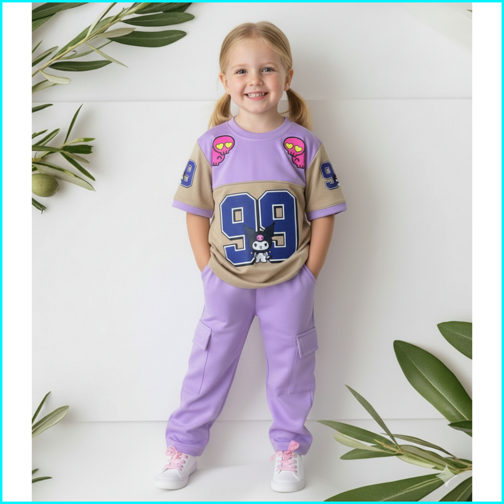 Setelan Anak Perempuan Hitam 1-10 Thn Setelan Kargo Jersy