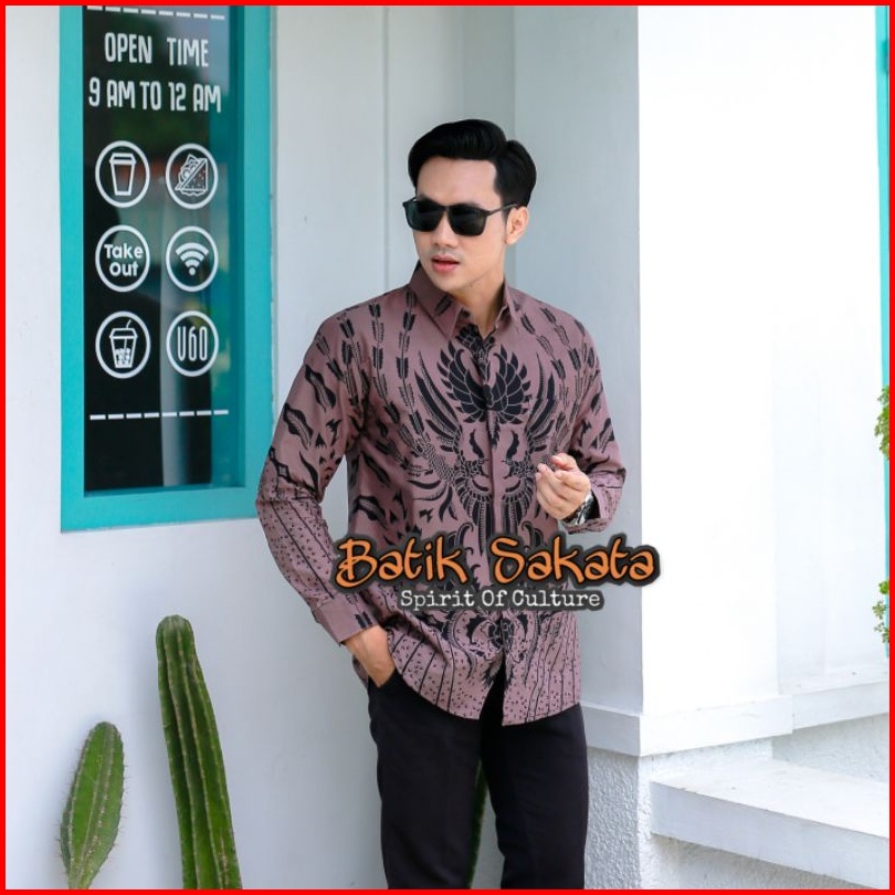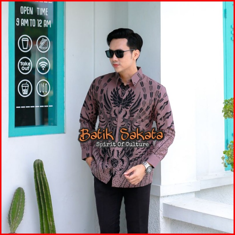 Sigra Kemeja Batik Pria Warna Taro Slimfit Lengan Panjang Bahan Katun Halus Lapis Furing