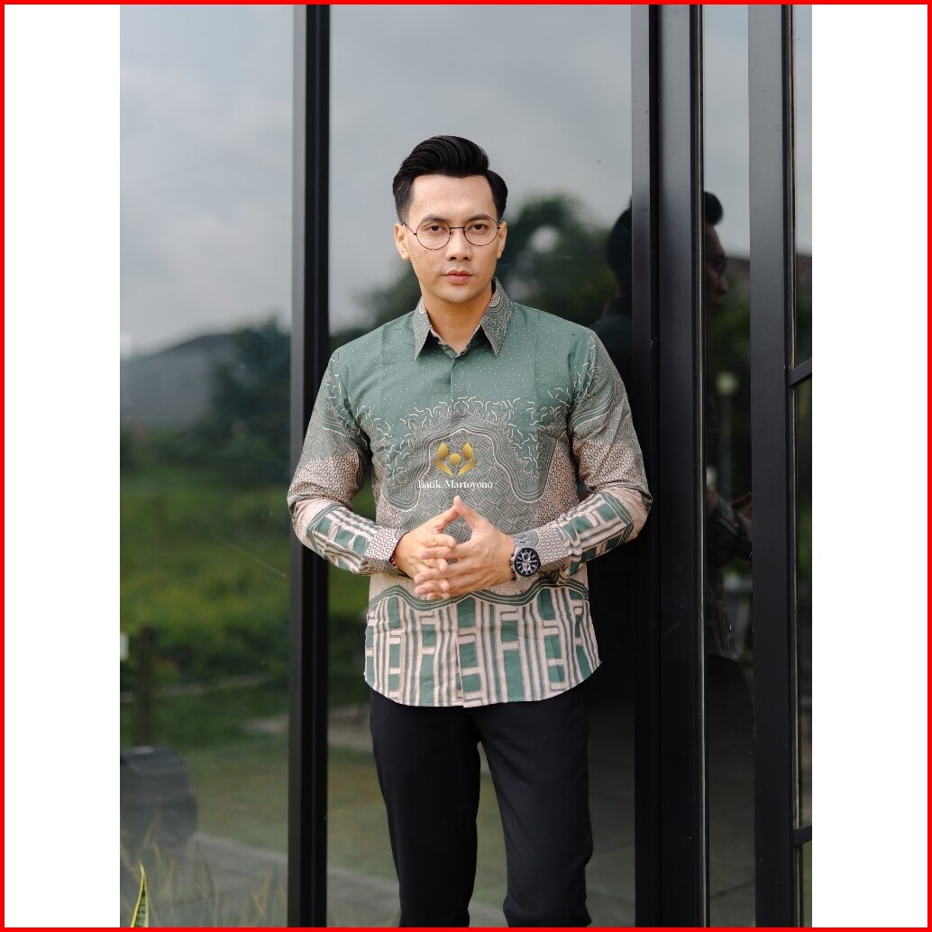 Anggoro Sage Kemeja Batik Pria Slimfit Premium Lengan Panjang Bahan Katun Halus Lapis Furing