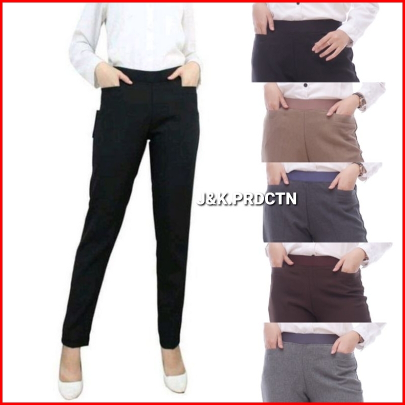 Celana Kantor Pinggang Karet Celana Kerja Wanita Celana Bahan Formal