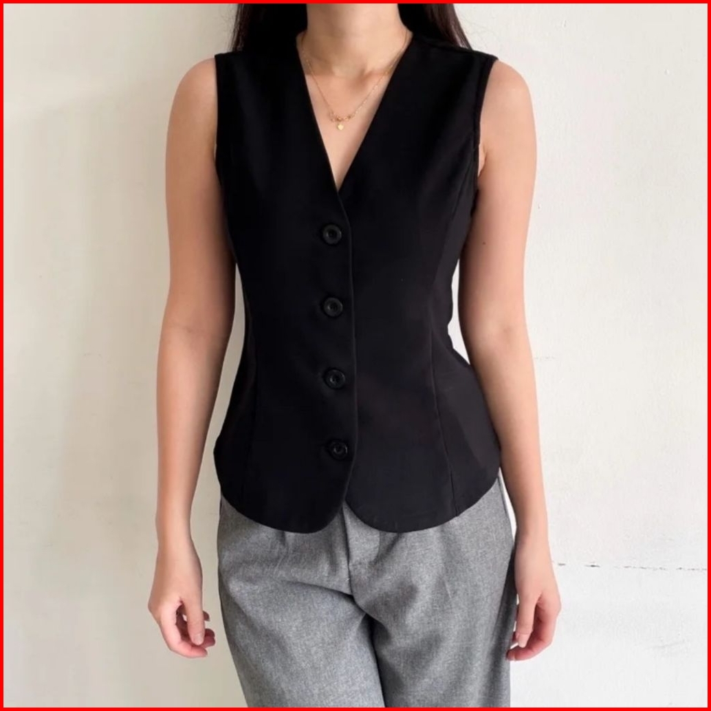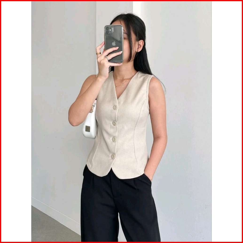 Aura Vest Set - Rompi Kerja Wanita - Atasan Wanita Kekinian Outer Basic - Blazer Tanpa Lengan Korean Style