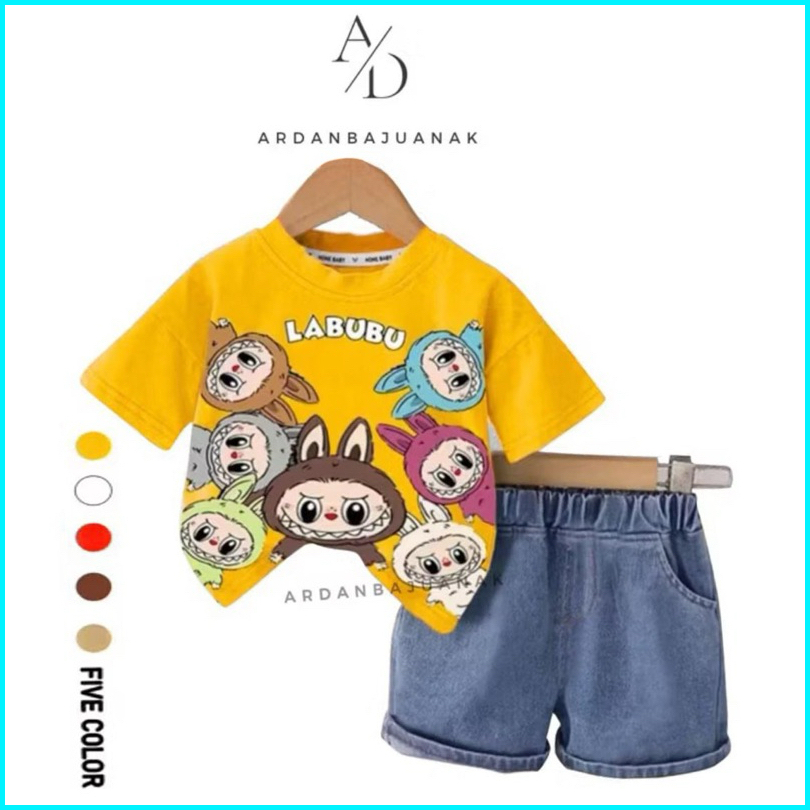 Kaos Anak Dan Celana Denim Anak Setelan Anak Perempuan Motif Labubu 1-5 Tahun Ardan Grosir
