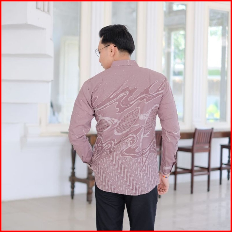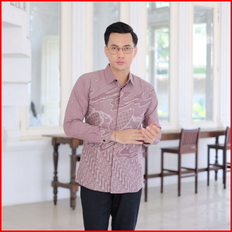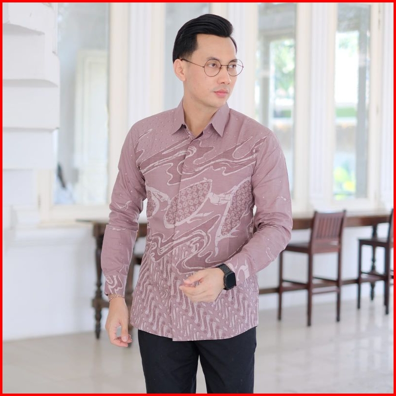 Wardana Soft Kemeja Batik Pria Warna Taro Slimfit Premium Lengan Panjang Bahan Katun Halus Lapis Furing