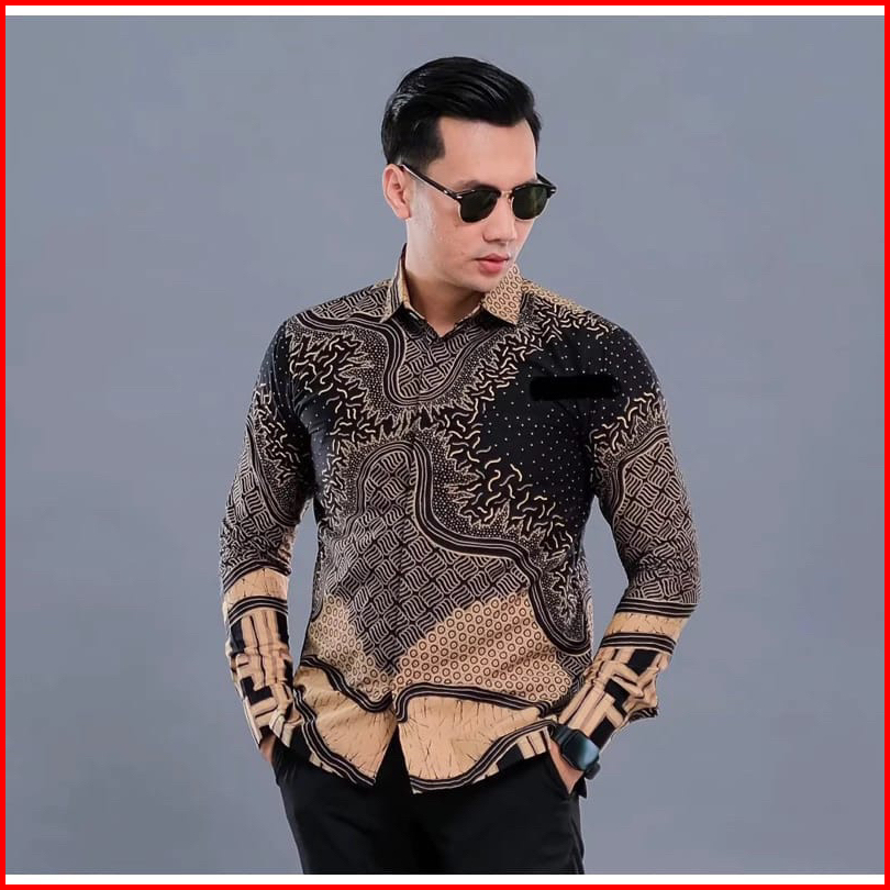 Bara Hitam Kemeja Batik Pria Slimfit Premium Lengan Panjang Bahan Katun Halus Lapis Furing
