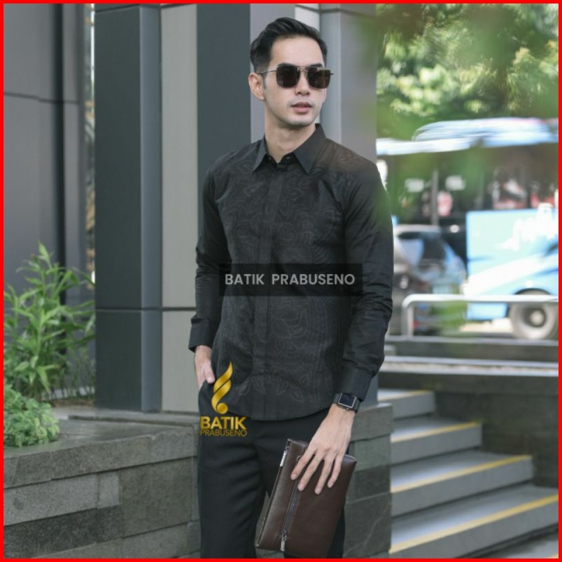 Batik Prabuseno Motif Agharna Baju Kemeja Pria Lengan Panjang Slim Fit Katun Printing Premium Formal Size S M L Xl Xxl J
