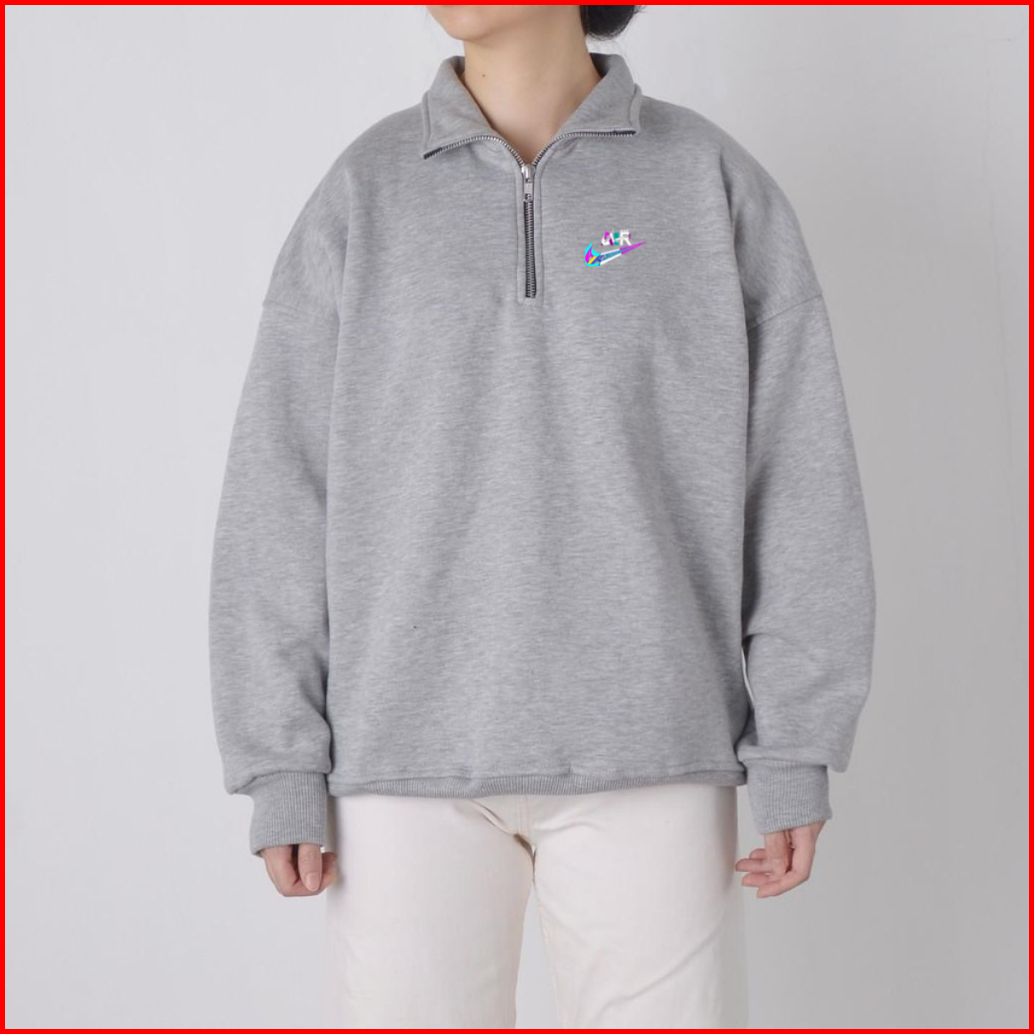 Outwear Logo Aesthetic Basic Half Zipper Fleece Hitam Sweater Half Zip Sweater High Neck