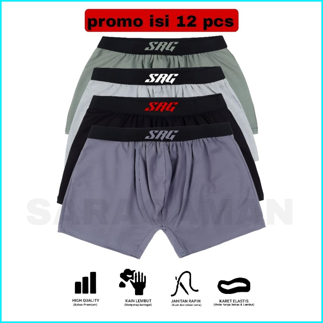 Celana Dalam Boxer Pria 12 Pcs 6 Pcs 5 Pcs - Boxer Cowok Dewasa Premium Nyaman Elastis Saragaman