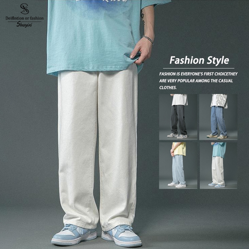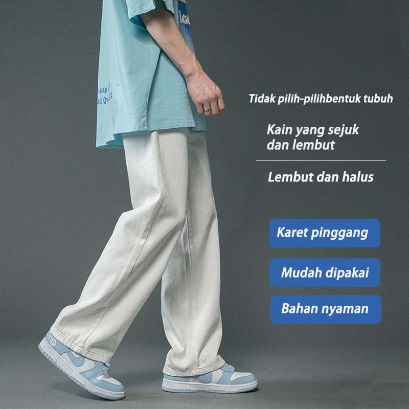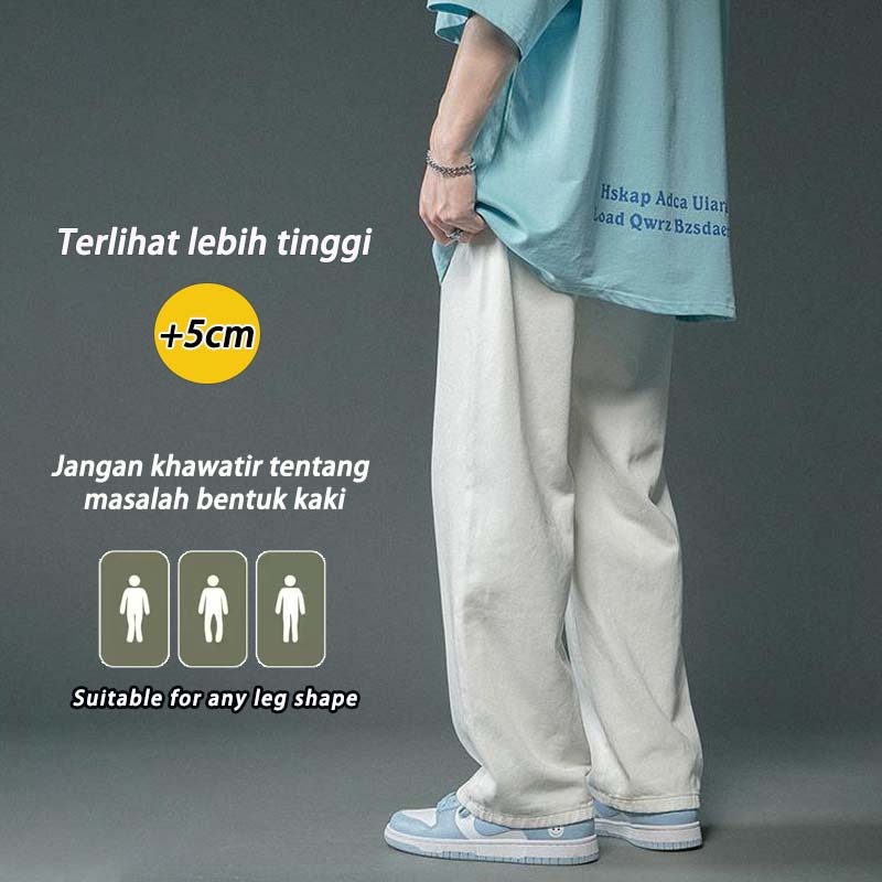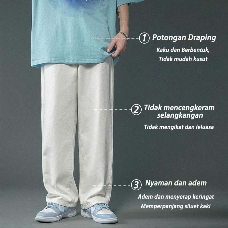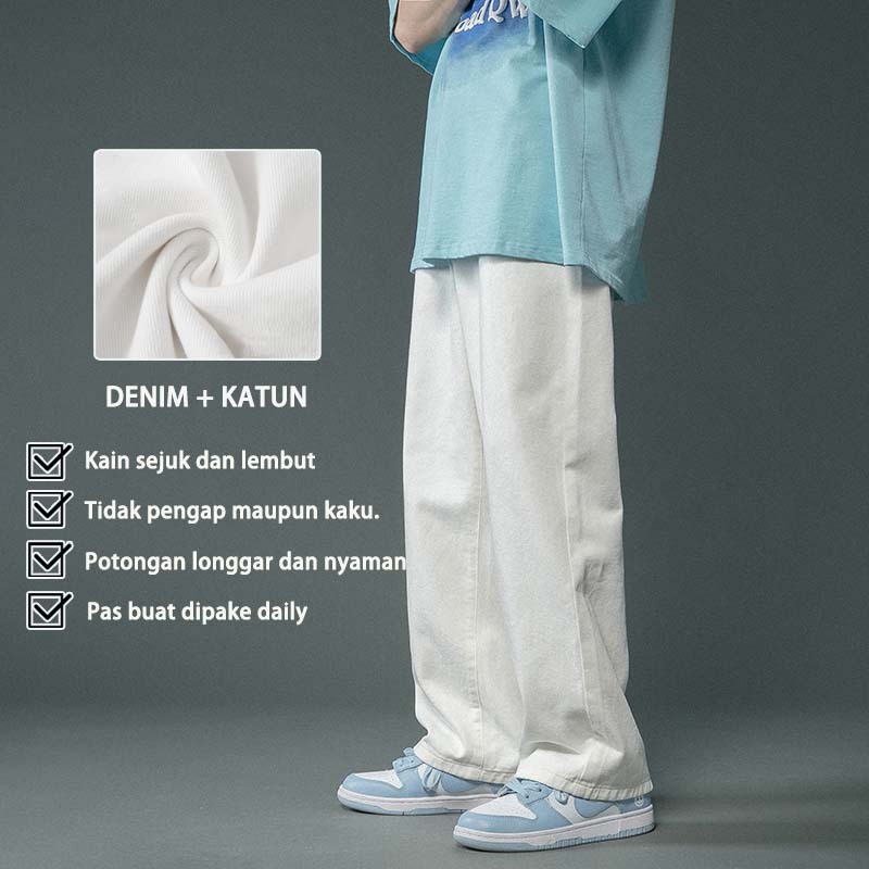 SUYX Celana Jeans Pria Baggy Celana Panjang Putih Oversize Celana Gombrong Pria Korean Style pants