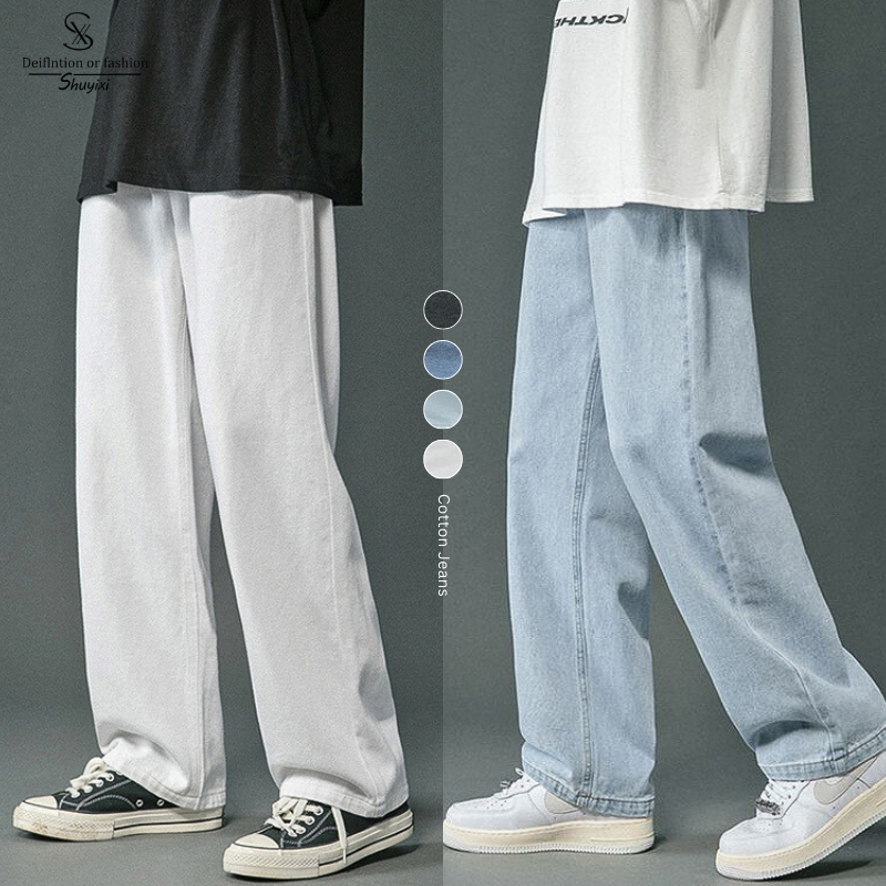 SUYX Celana Jeans Pria Longgar Lurus Korean Stlye Loose Pants Celana Panjang Straight Jeans Pria