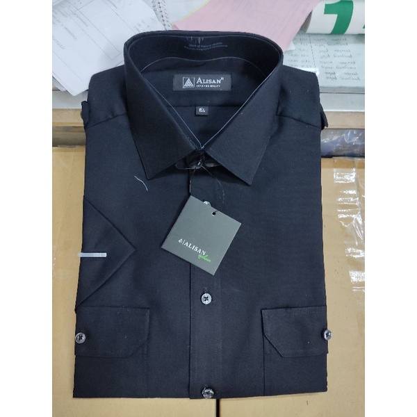 kemeja Alisan PDH lengan pendek putih dan hitam