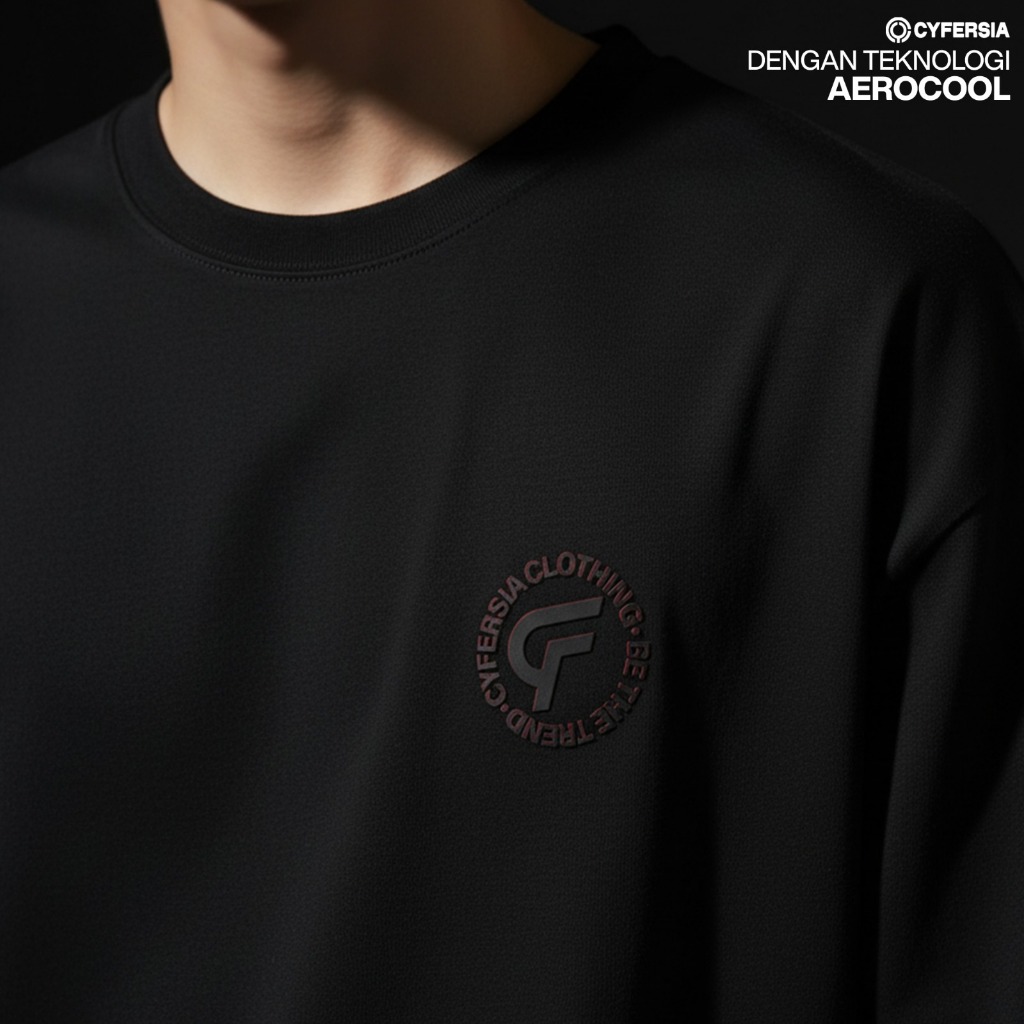 Cyfersia Kaos Oversize Logo Timbul 2 Warna Pria Wanita Unisex Bahan Adem Aerocool