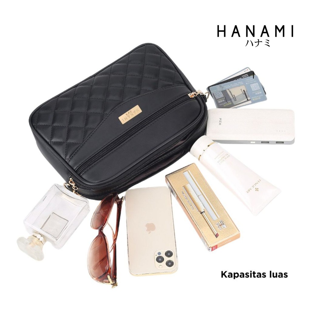 HANAMI Tas Selempang Wanita Kekinian Kulit Hitam Sling Bag Cewek Zefia Fashion Casual Simple Terbaru