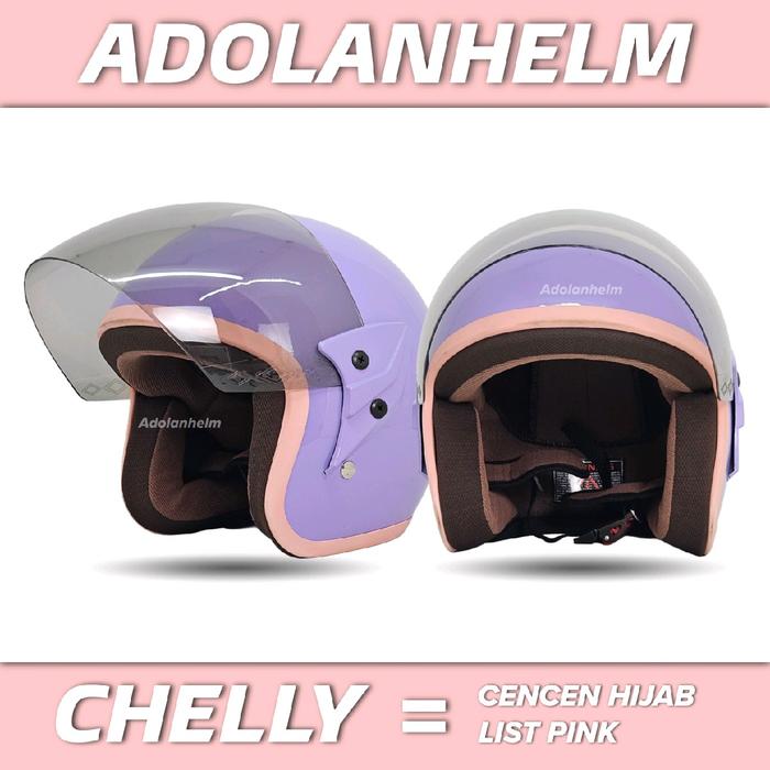 Helm Single Visor Wanita List Pink Full Leher SNI Motorcycle - Chelly - Millo Glossy All Size