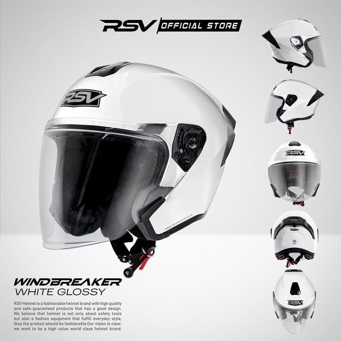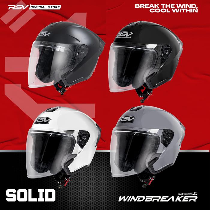 Helm RSV Windbreaker All Warna Solid - Helm Half Face SNI Unisex [All Color] - Black Glossy M