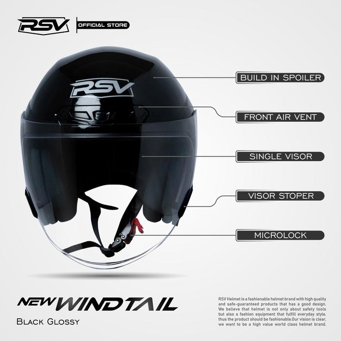 HELM Half Face RSV NEW WINDTAIL BLACK GLOSSY Motorcycle - M