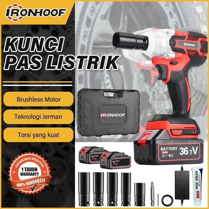 Kunci Pas Listrik IRONHOOF Kunci Pas Impak Tanpa Sikat 420N 1/2 Inci - 24V Hitam 1 Baterai