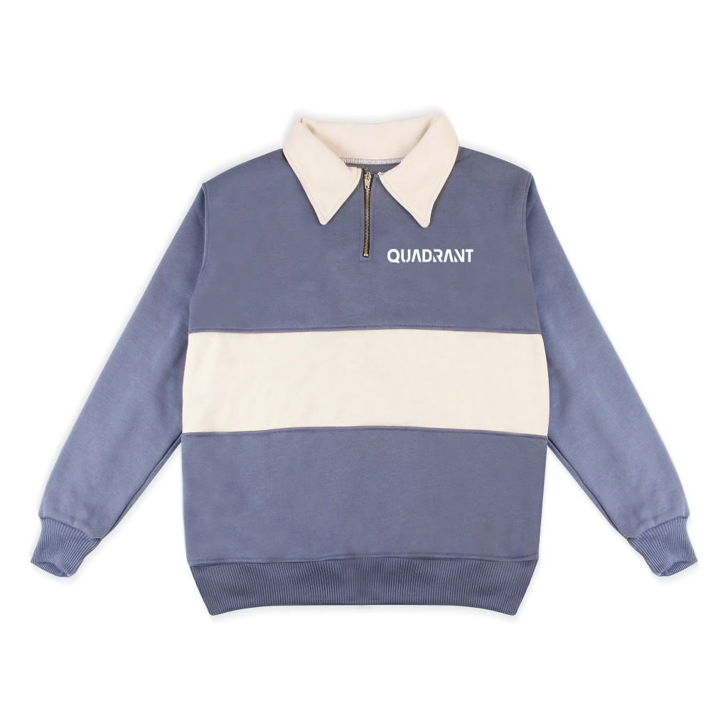 QUADRANT Sweater Pria Half Zip Rugby Hitam Denim Cream