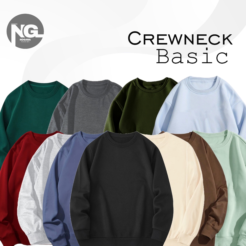 Sweater Crewneck Dewasa Polos Basic Pria Wanita Lengan Panjang Bahan Fleece Premium