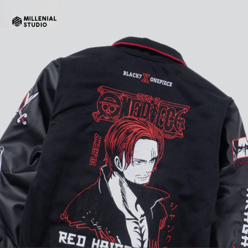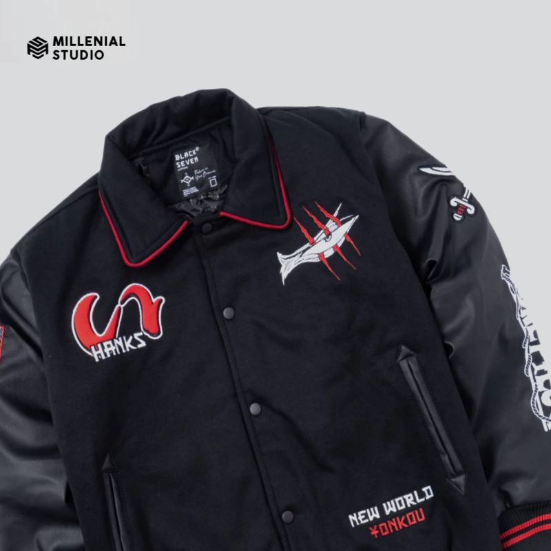 VARSITY JACKET ONE PIECE AKAGAMI NO SHANKS HITAM | JAKET BASEBALL ANIME | BORDIR ORIGINAL BLACKSEVEN