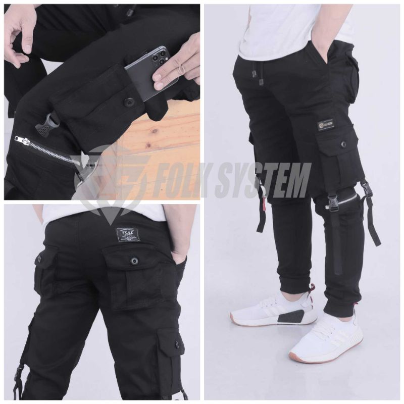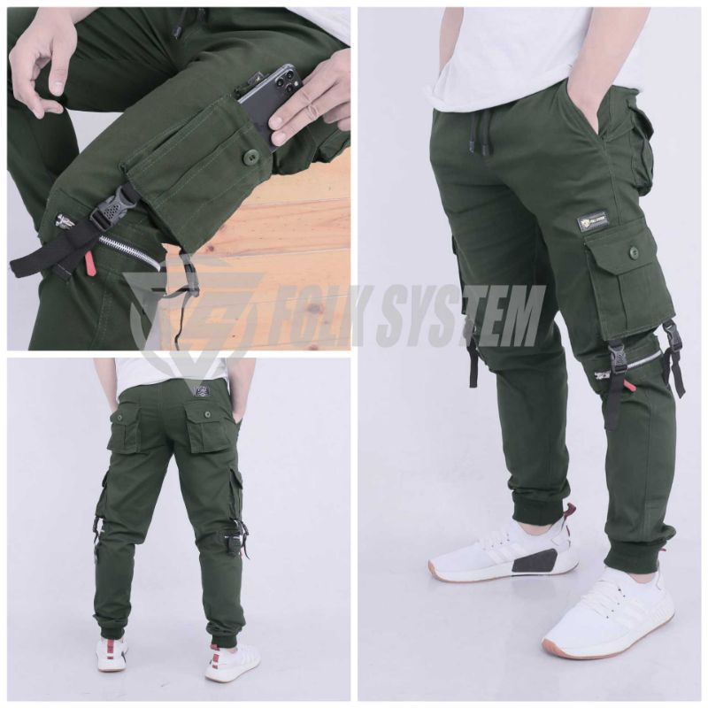 Celana panjang pria chino cargo jogger gesper FLK original folksystem