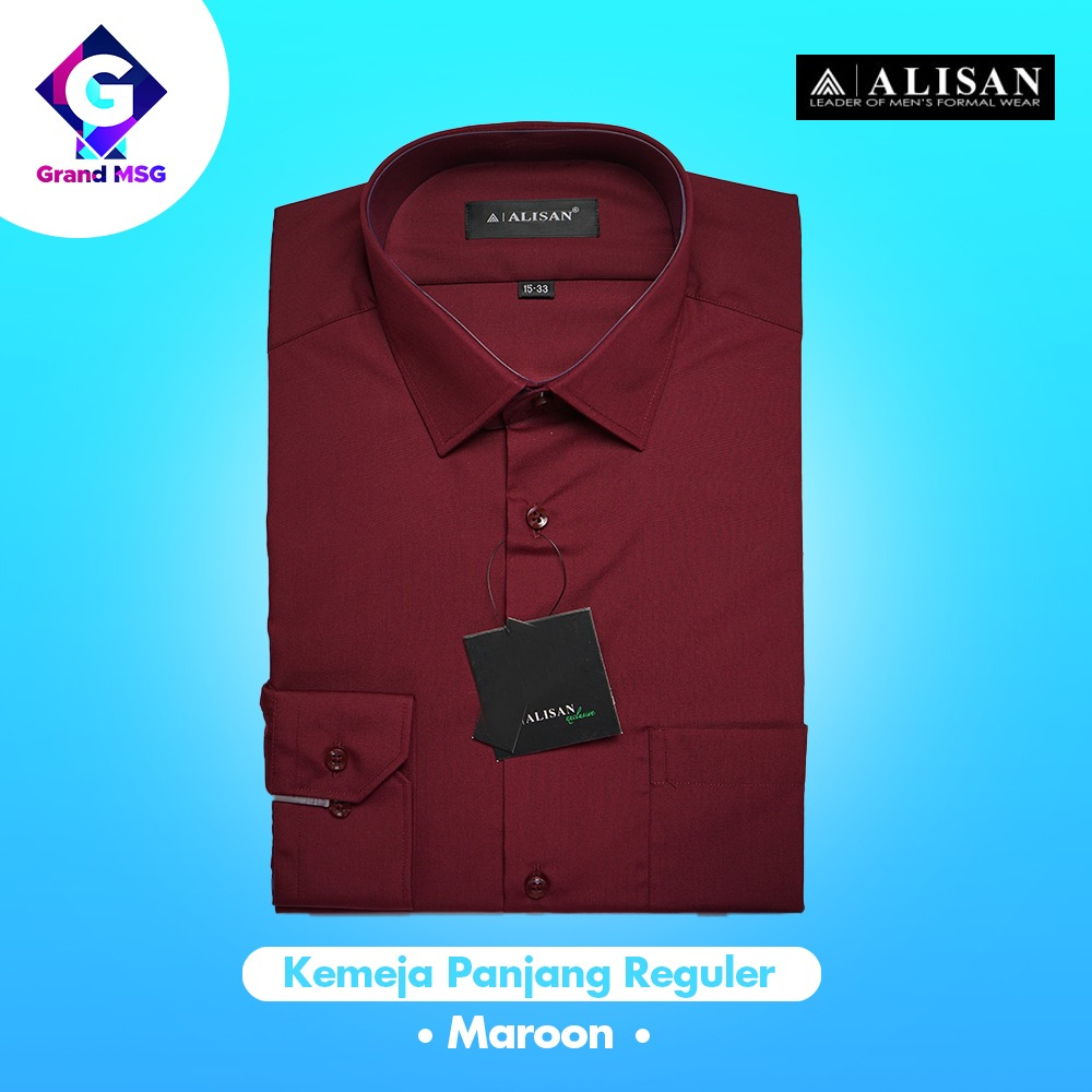 Kemeja ALISAN Formal Kantor Pria SLIM FIT/ REGULER Lengan Panjang Polos Hitam Putih 100% ORIGINAL