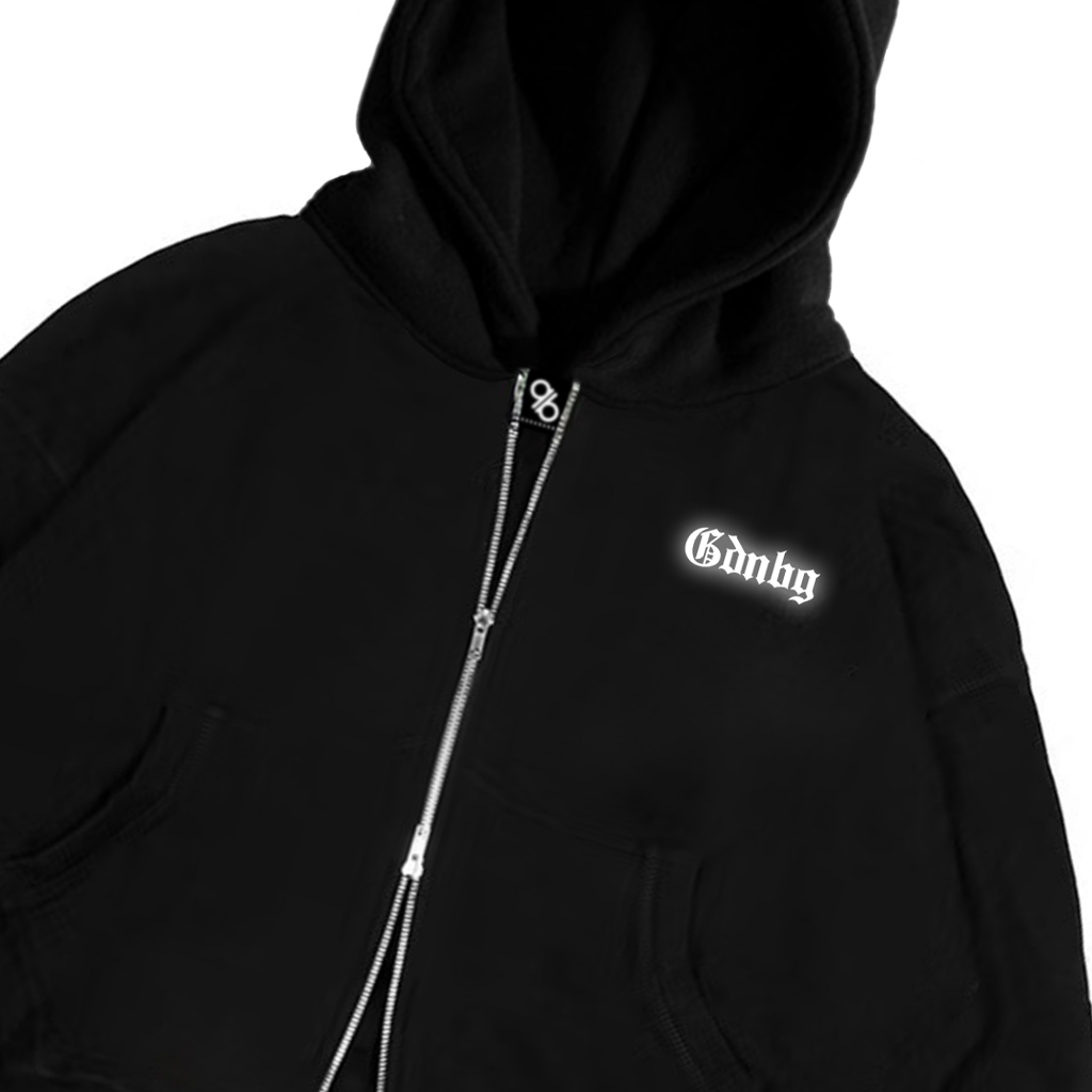 Gadabang Hoodie Boxy Double Zipper StarBoy Menyala Sablon Reflective Paranoid Hitam