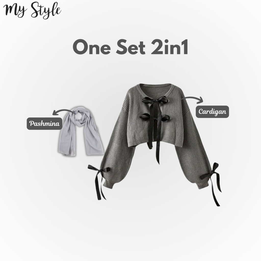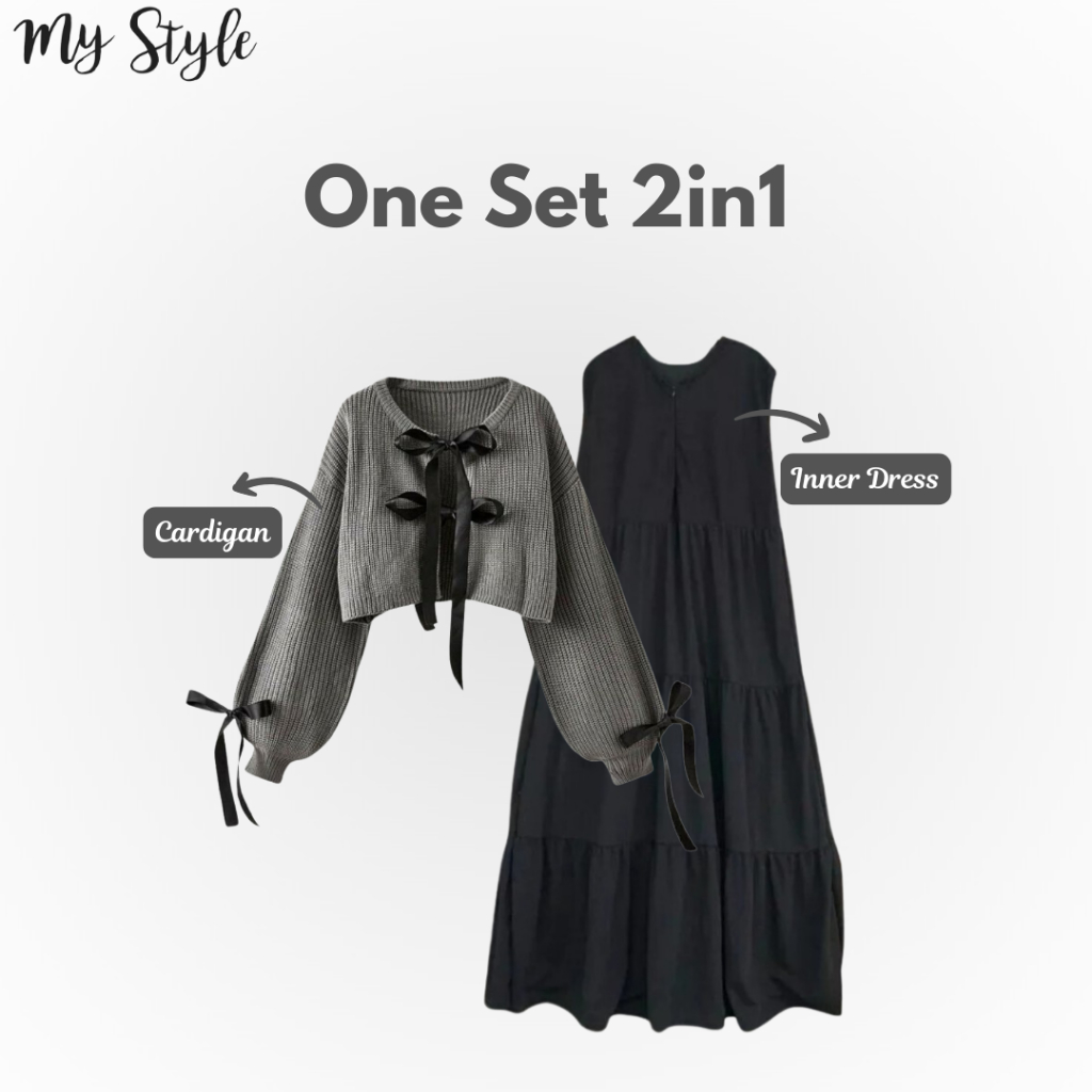One Set Korean Style 3in1 / Inner Dress + Cardigan + Pashmina / Ouit Hijab OOTD Kekinian / Fashion Casual Remaja Wanita