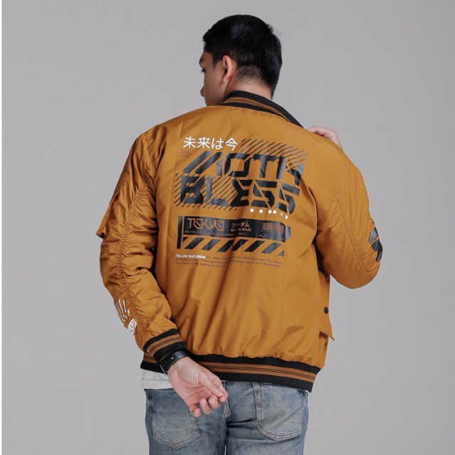 Jaket Bomber Varsity Baseball Pria Taslan Panjang Tebal Original